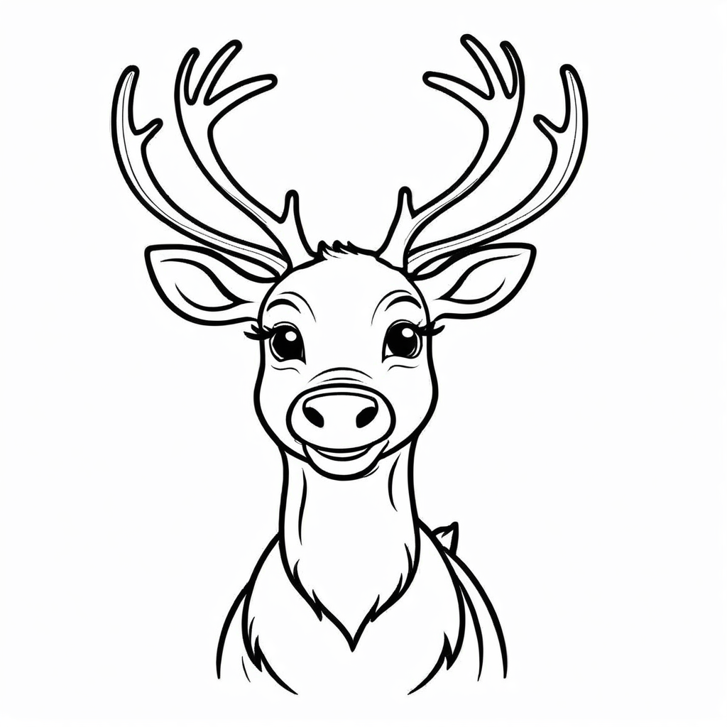 An adorable reindeer with big antlers and friendly eyes. A sweet Christmas character perfect for young artists.