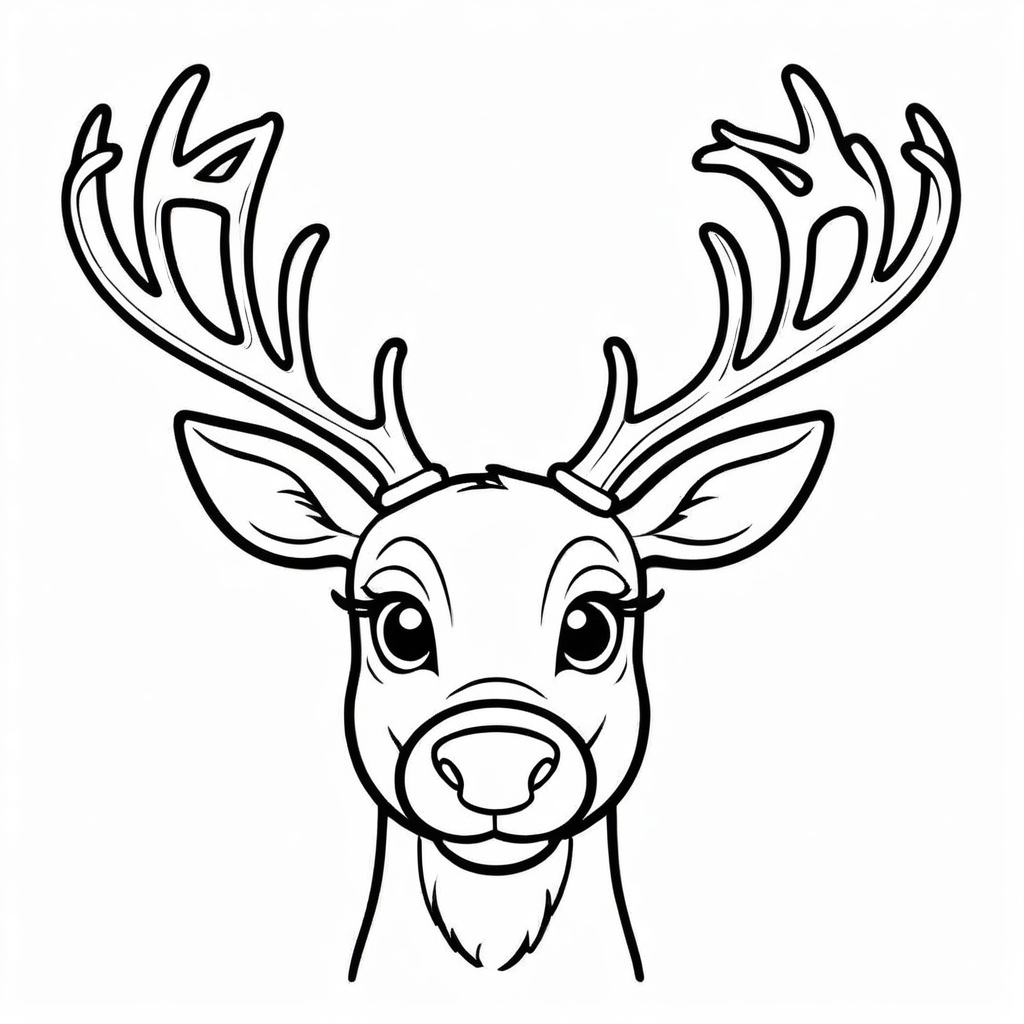 An adorable reindeer with big antlers and friendly eyes. A sweet Christmas character perfect for young artists.